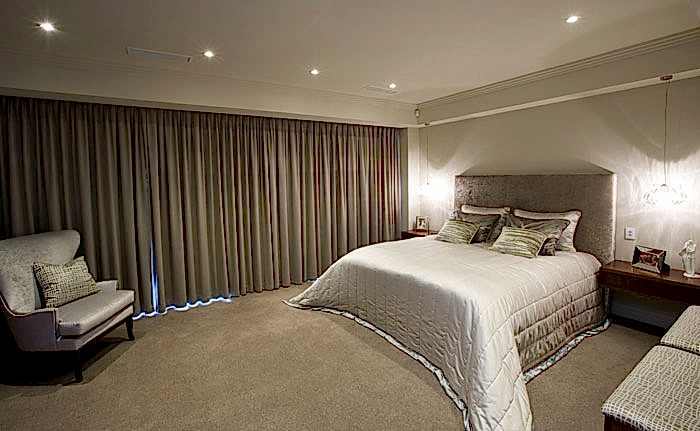 The generous master bedroom was decorated to give the owners a feeling of being in a 5 star suite and bespoke purpose built furniture pieces were commissioned, combining practicality and style.