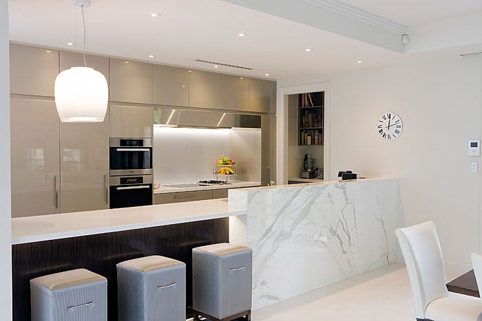 The owners of this magnificent boutique architecturally designed new build, wanted to create a sense of home. Incorporating a gentlemen’s study into the front sitting room was a high priority to gain maximum use of space whilst still maintaining formal elegance. The family area adjoining the outdoor entertainment space continued with a fresh classic flavour for comfortable family living to compliment the clients “must have” Calcutta marble, which was purpose selected for a vertical panel in the kitchen, adding warmth and extra dimension to the timber and metallic paint finishes.